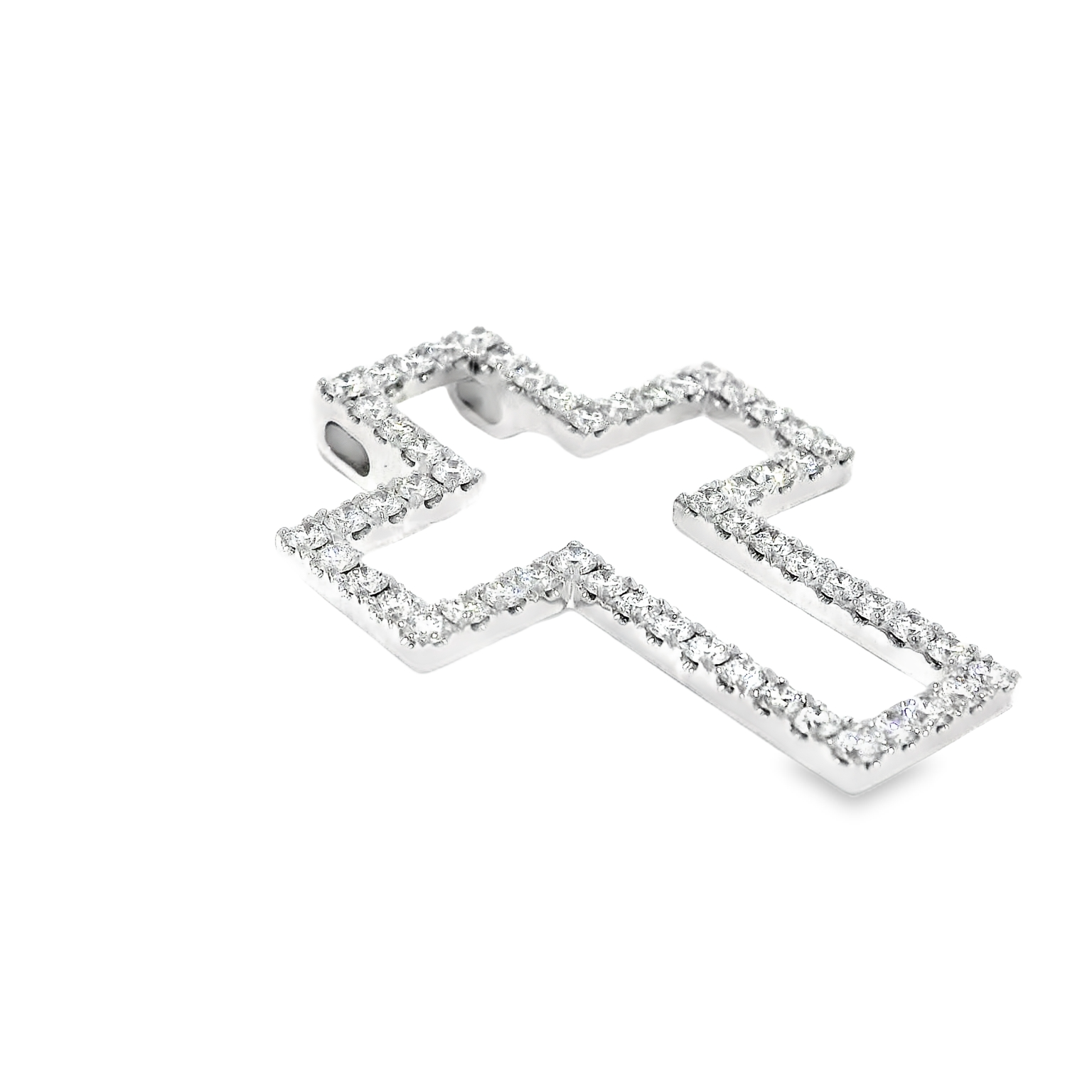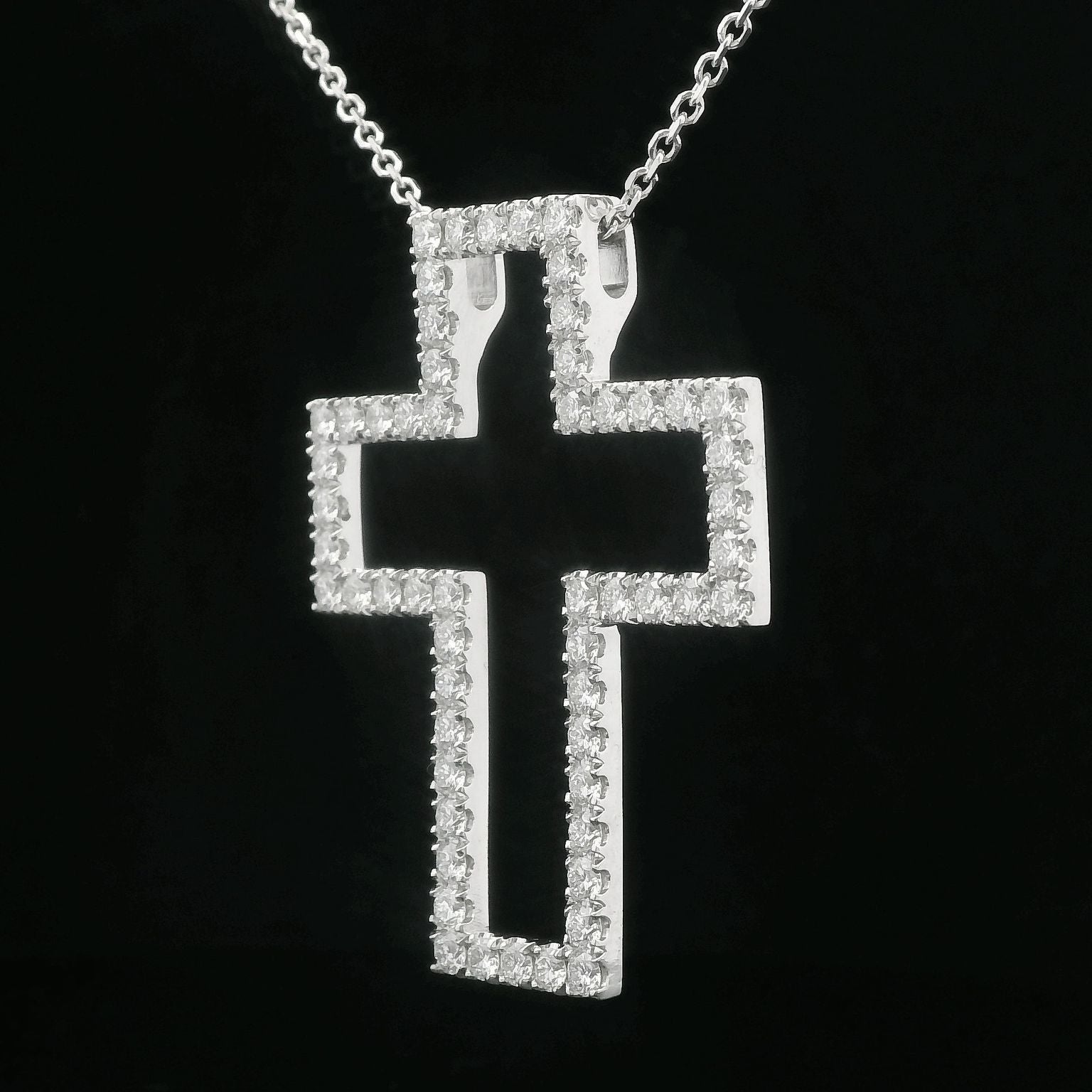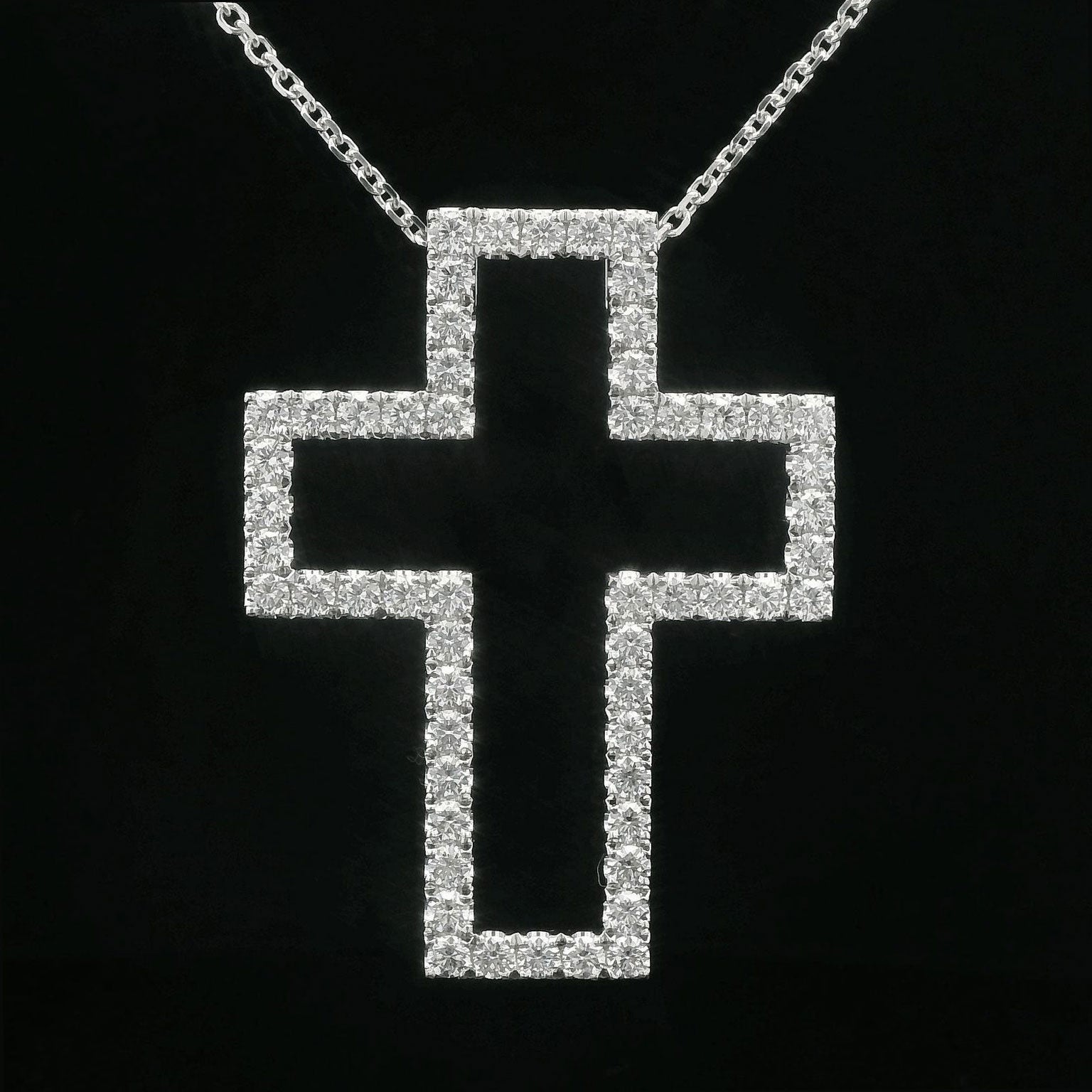 This exquisite diamond cross pendant is a timeless piece that embodies elegance and grace. Crafted with precision, each sparkling diamond is meticulously set to create a stunning visual impact. Perfect for any occasion, this pendant adds a touch of sophistication to your ensemble.