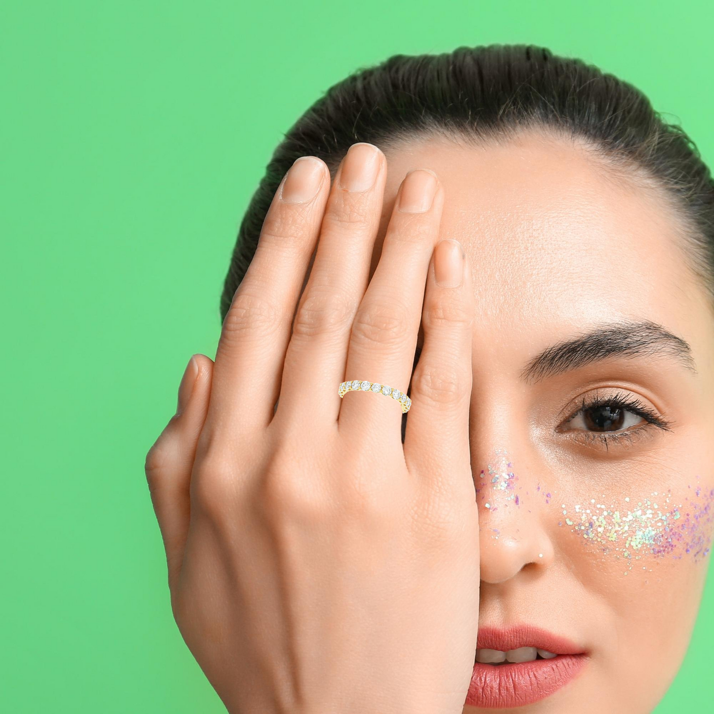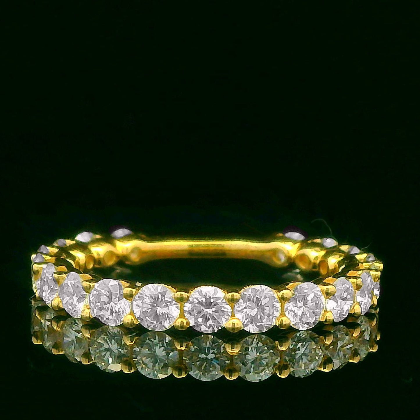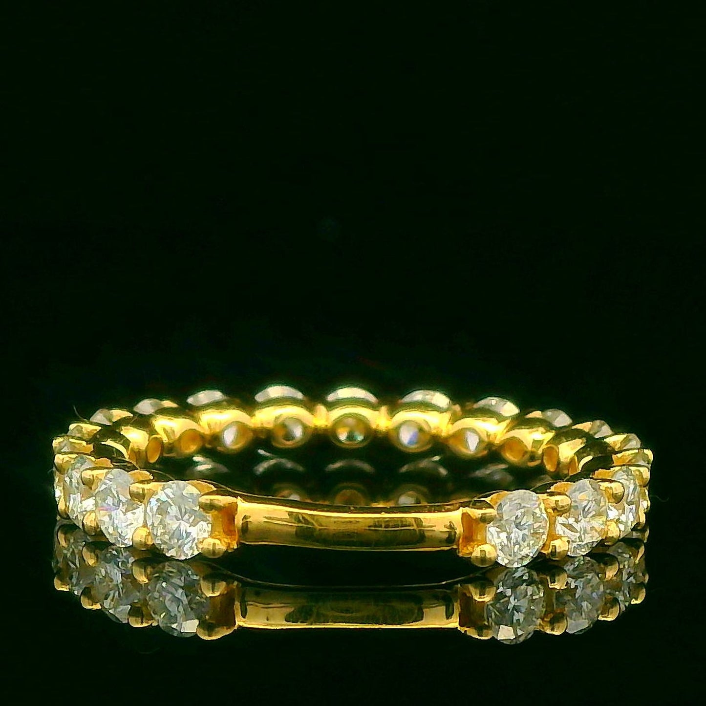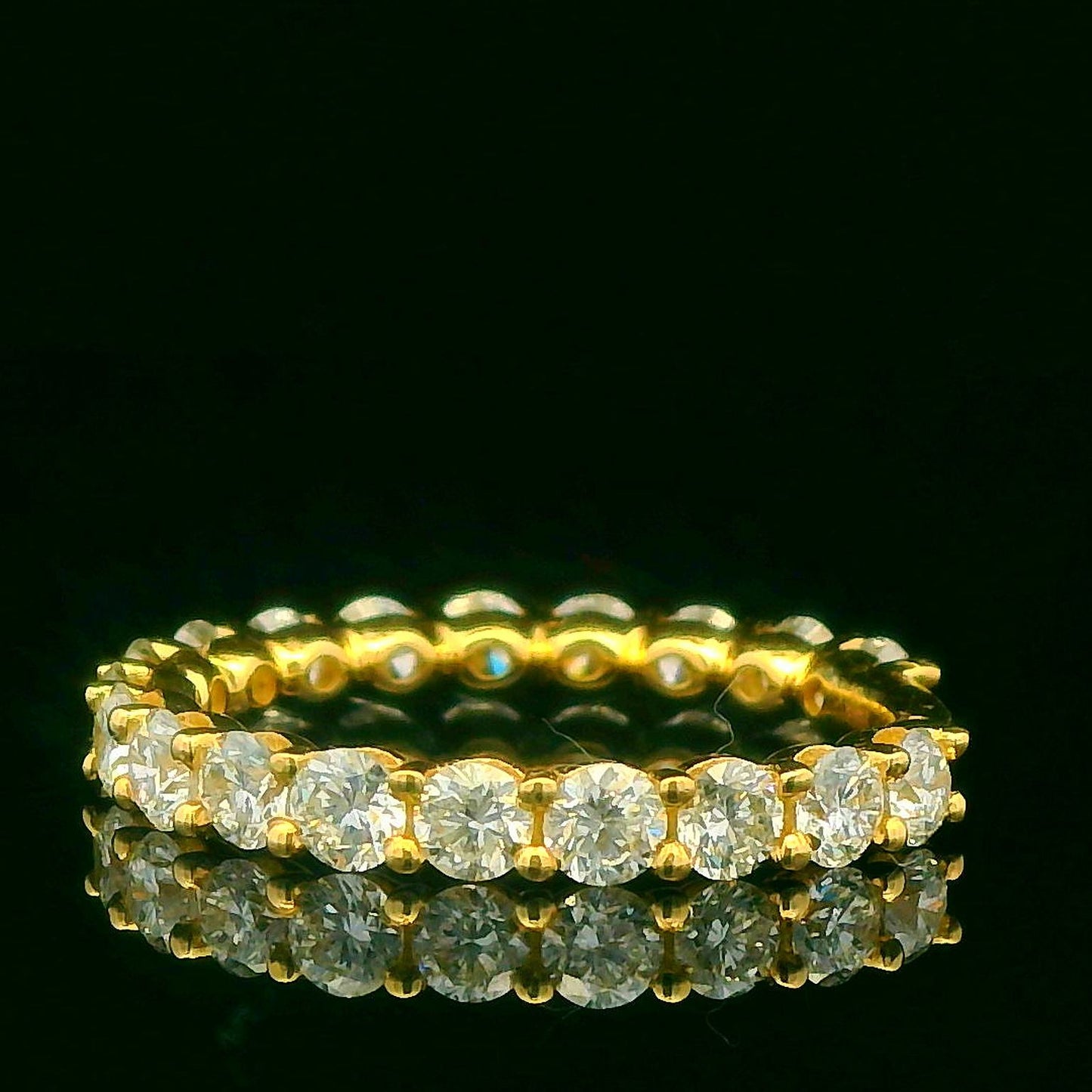 This exquisite diamond eternity ring features a continuous circle of brilliant-cut diamonds set in a luxurious gold band. Perfect for symbolizing everlasting love, its timeless design makes it an ideal choice for weddings, anniversaries, or special occasions.